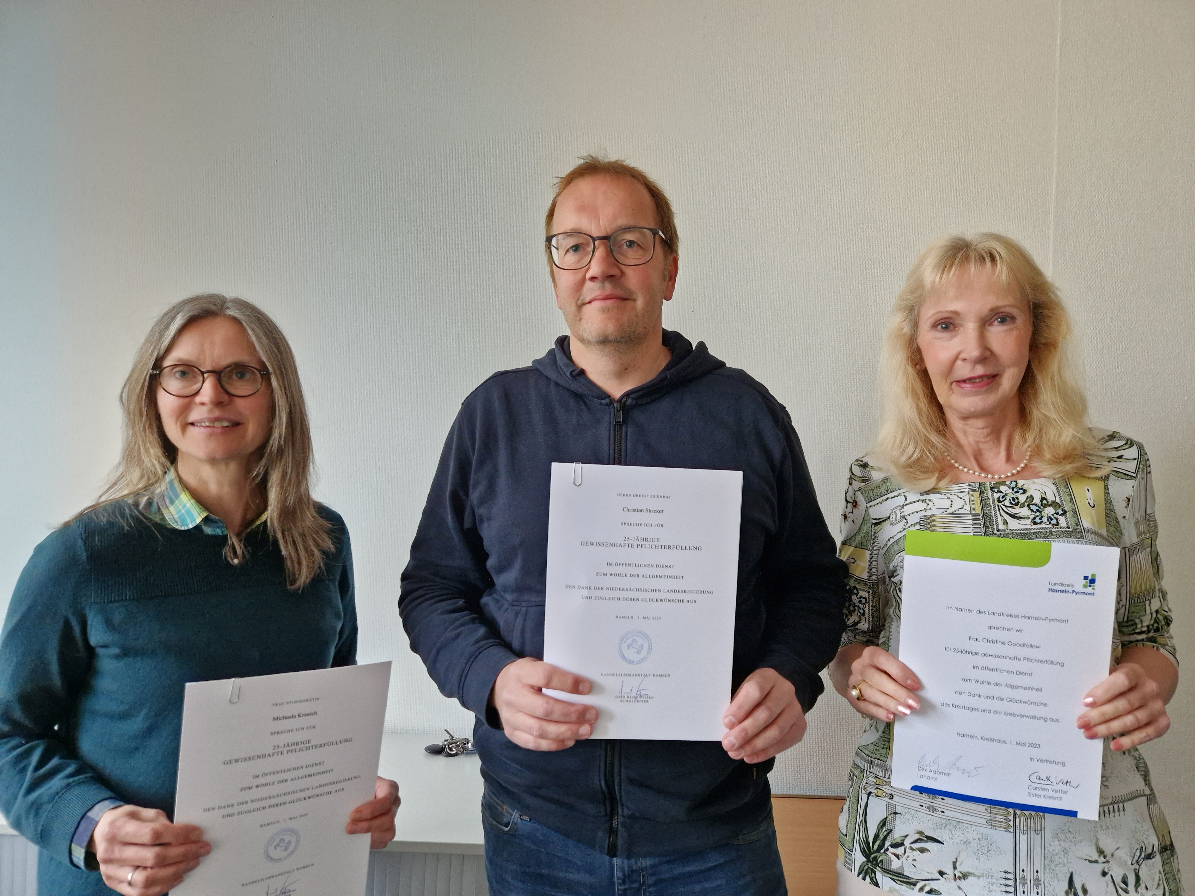 Gleich zwei Jubilarinnen und einen Jubilar konnten aus den Händen von Schulleiter Bernd Strahler eine Urkunde und einen großen Dank des Landes, des...